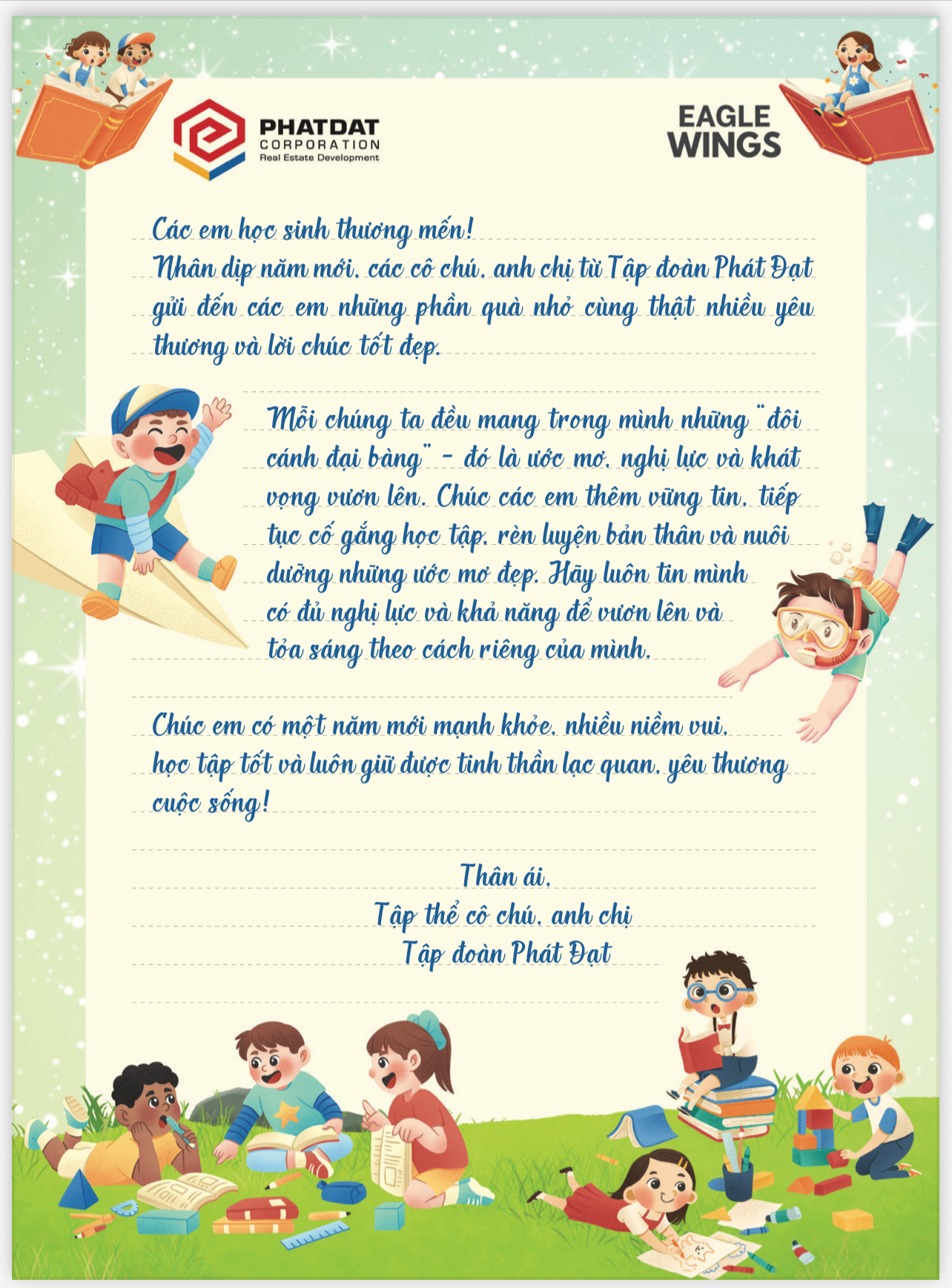 Bên cạnh phần quà hiện kim, mỗi suất học bổng còn đi kèm Thư gửi các em học sinh, như lời động viên chân thành từ tập thể CBNV Phát Đạt, mong các em thêm cố gắng và vững tin trên chặng đường phía trước.