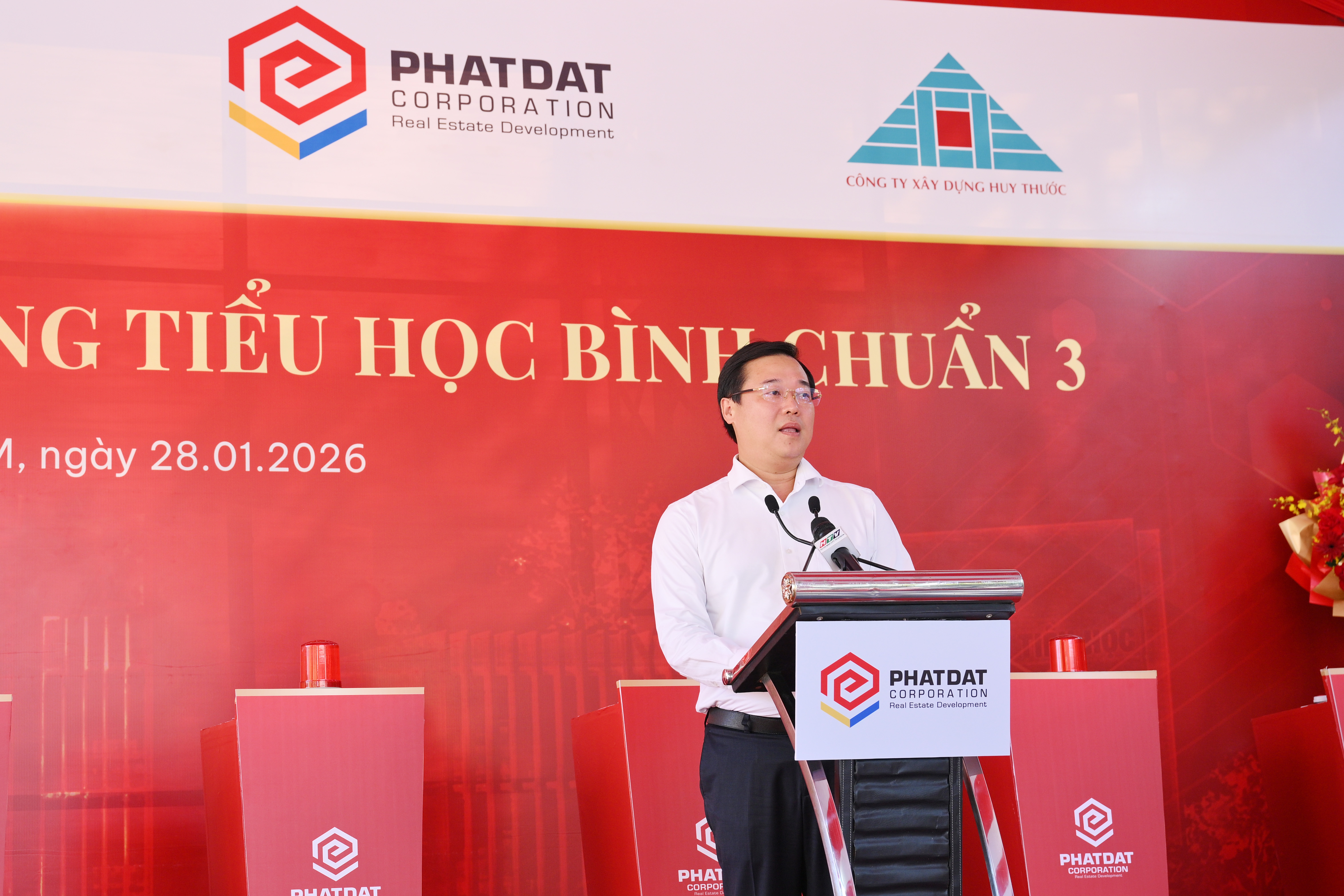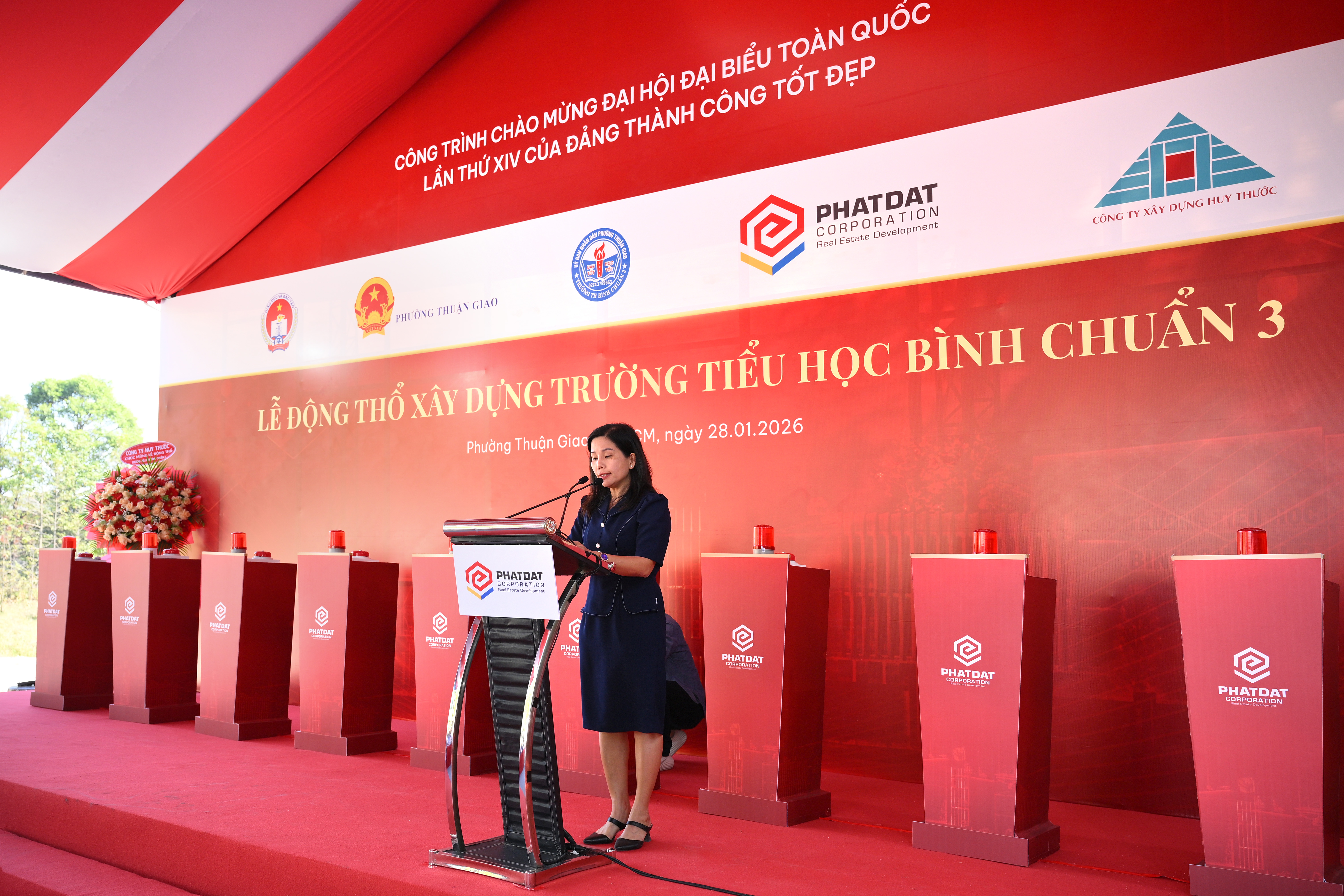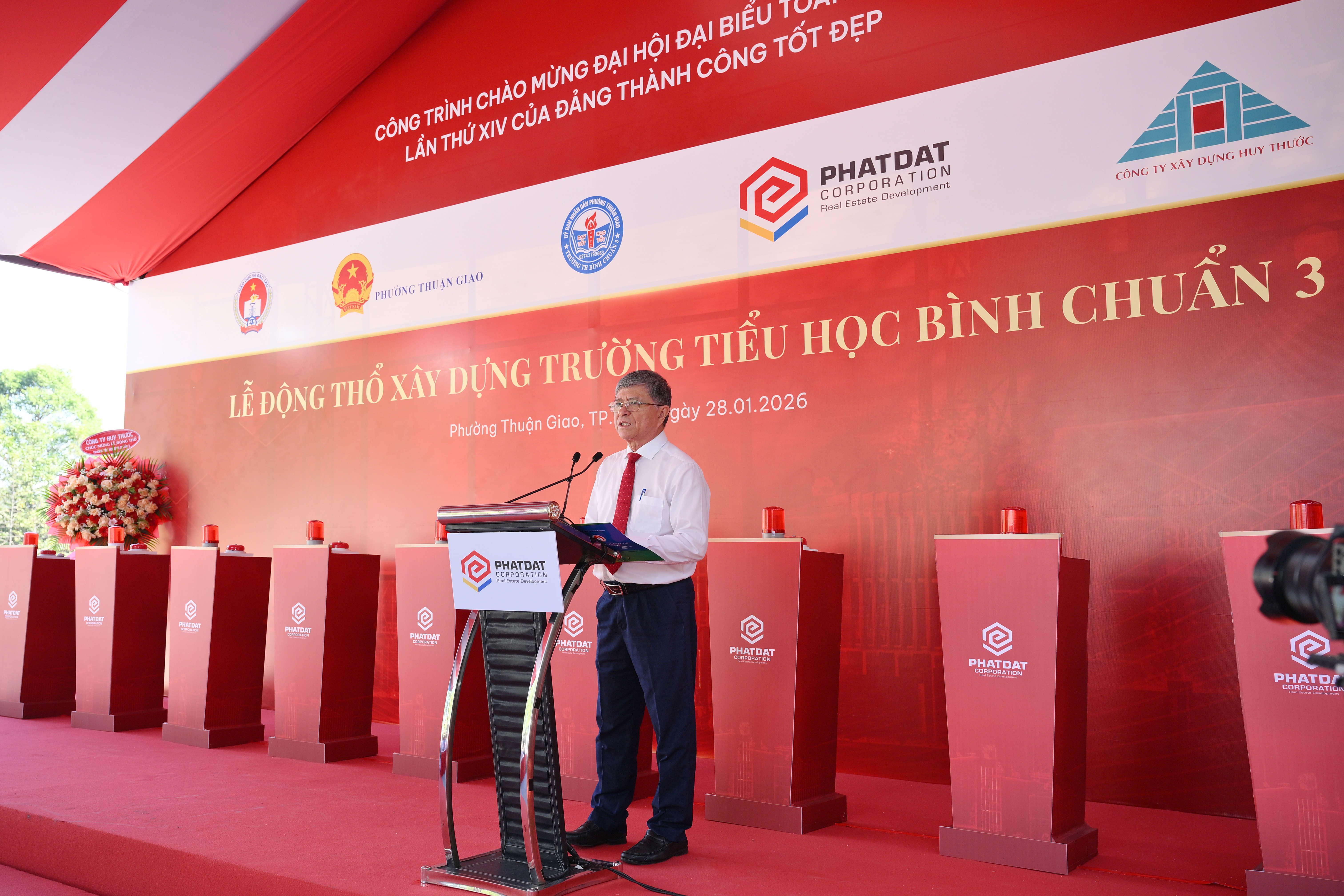 TP.HCM, thứ Tư, ngày 28/1/2026. Thực hiện chủ trương xã hội hóa giáo dục và định hướng phát triển hạ tầng xã hội của Thành ủy – UBND TP.HCM, Công ty Cổ phần Phát triển Bất động sản Phát Đạt (HOSE: PDR) tài trợ xây dựng Trường Tiểu học Bình Chuẩn 3 tại địa bàn phường Thuận Giao. Sáng ngày 28/01/2026, Phát Đạt đã chính thức tổ chức Lễ động thổ xây dựng công trình này. Dự án được Phát Đạt tài trợ toàn bộ kinh phí theo hình thức “chìa khóa trao tay”, với tổng giá trị đầu tư là 145 tỷ đồng, dự kiến sẽ được bàn giao hoàn thiện vào cuối tháng 7 năm nay.