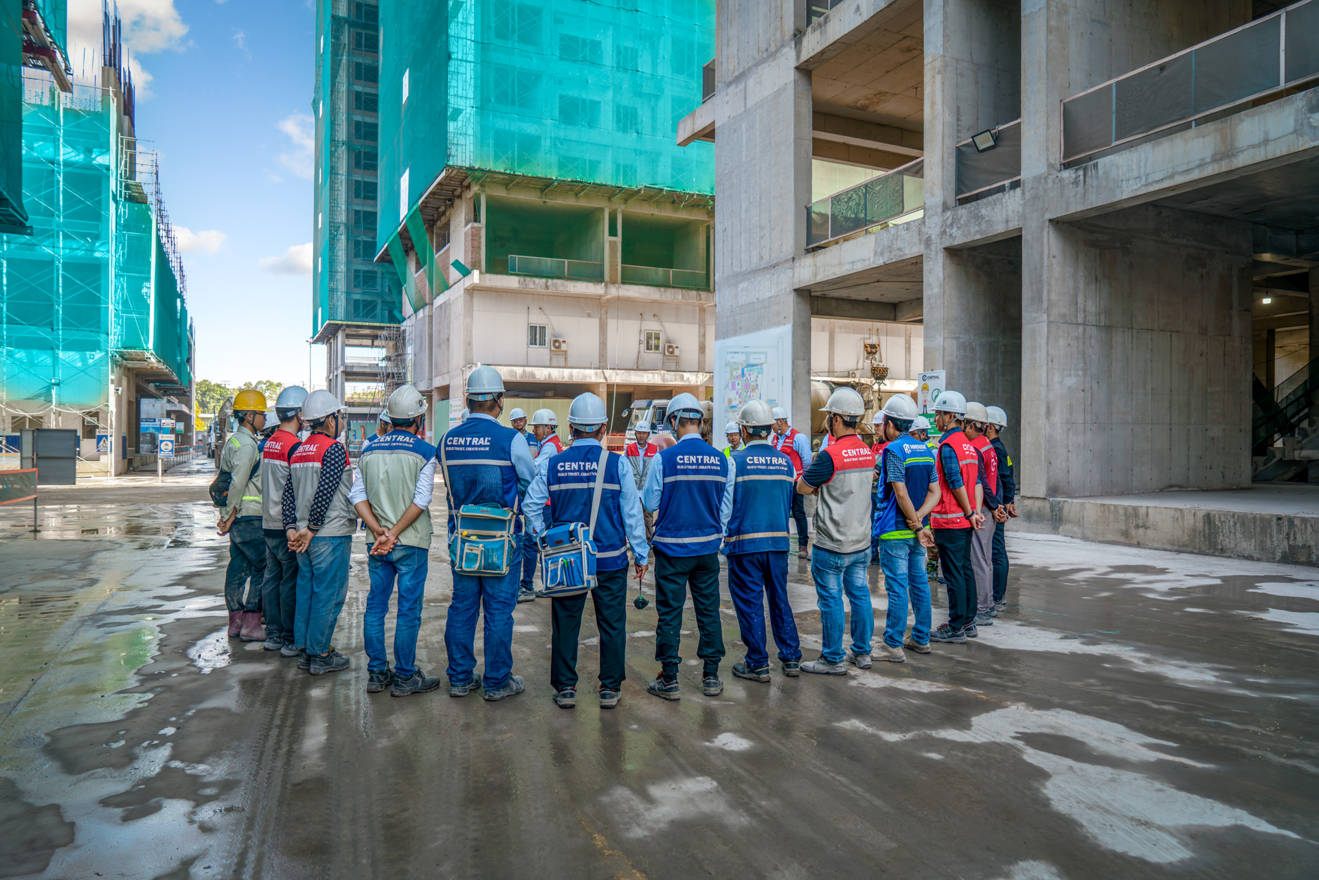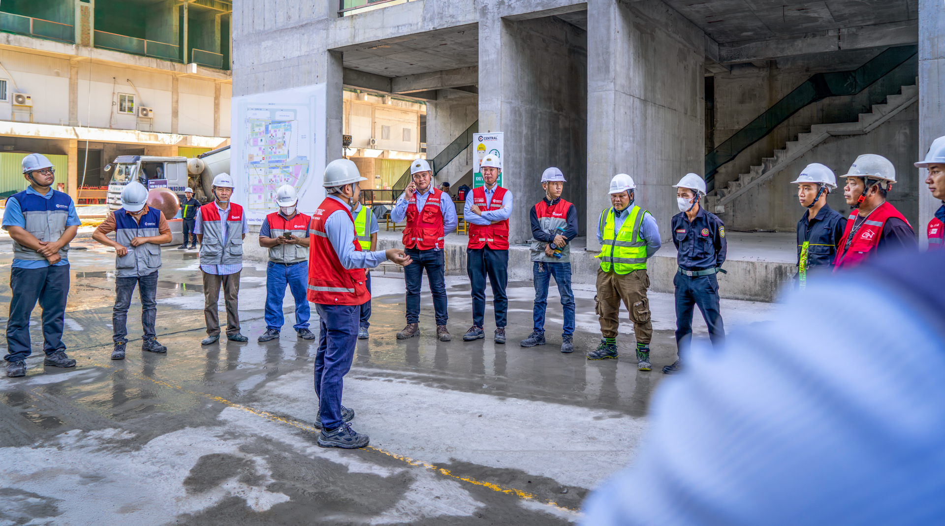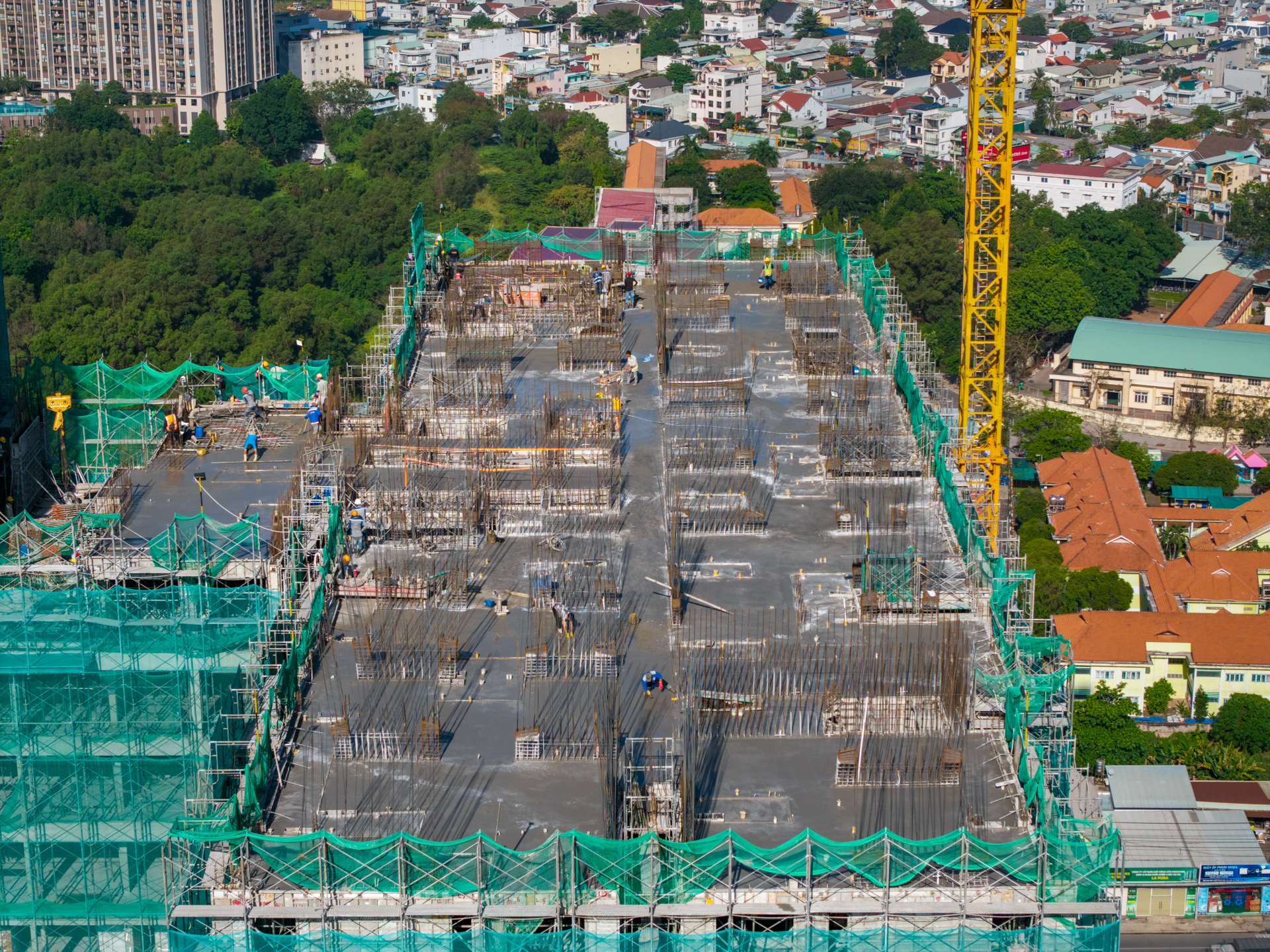 Hơn 800 nhân sự đang làm việc liên tục tại công trường, cùng hệ thống máy móc vận hành 100% công suất, đảm bảo tiến độ được duy trì ổn định và xuyên suốt. Các hạng mục được tổ chức thi công khoa học, tối ưu hiệu quả trên toàn công trường.