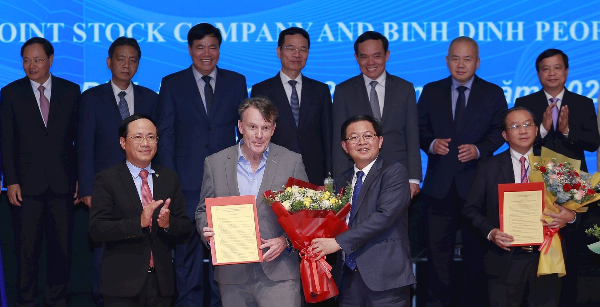 Những nhà đầu tư trong và ngoài nước nhận Giấy chứng nhận đăng ký đầu tư tại Hội nghị xúc tiến đầu tư tỉnh Bình Định năm 2024. Ảnh: Realty Holdings